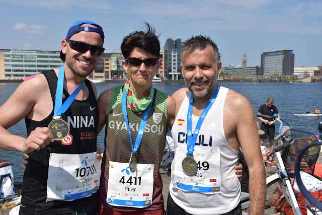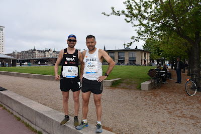 Amanecía (a las 4:15 a.m) la capital danesa con el cielo cubierto, como con ganas de llover, aunque sabíamos que no iba a ser así, con 14°, y una ligera brisa bastante fresca, que me dio respeto respeto desde el principio, no pensaba que fuera a ser un tostadero. Había quedado con Chuli y Marisa a las 8:40 en el puente que separa el canal principal para prepararnos, hacernos las fotos de rigor, criticar el tiempo y demás. Así fue. Sin haber pegado apenas ojo en toda la noche, desayuné a las 7 en el buffet del hostel en que me hospedaba, no más de la cuenta, pero si contundente. Preparé la equipación, ya que ayer fue un gran día de turismo y no lo había hecho aún. Tres de mis cinco compañerxs de habitación también han sido maratonianos, por lo que ha habido buen ambiente previo a la salida de la habitación. Ya con Jesús y su esposa, lo dicho, minutos previos a la salida nos juntamos y soltamos nervios fuera. Imposible por poca o mucha experiencia que se tenga en esta distancia.