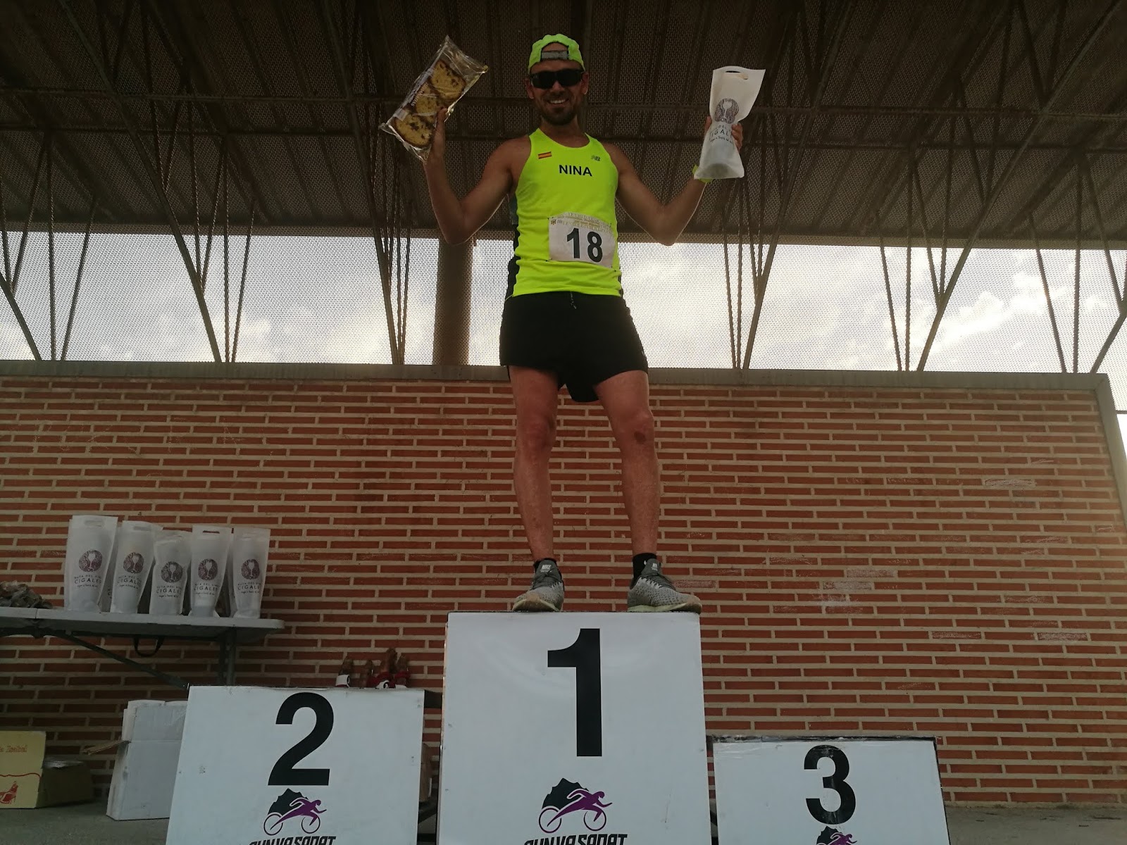 La salida, con media hora de retraso como bien he dicho, sin el alcalde, concejal de deportes, o una persona que represente al pueblo, se efectúa de manera simple y fea. Rápida, pues de primeras veo al gran Giralda y Canabrias del club Ulsa, esto me quiere decir que tendré que pelear muy duro por estar en cabeza de carrera durante la carrera. Desde el primer momento me pongo en cuarta posición, puesto que no cambiaría durante todo el tiempo. Salgo muy fuerte, pasando el primer kilómetro ende 3’14, y mantengo un excelente ritmo hasta que empiezan las subidas. Con un ritmo medio de 3’40″/km, teniendo en cuenta la altísima temperatura y un desnivel positivo acumulado de 188 metros, me hago con un satisfactorio 4° puesto en la general, 1° de mi categoría y primer corredor independiente (sin club), en 24’15»